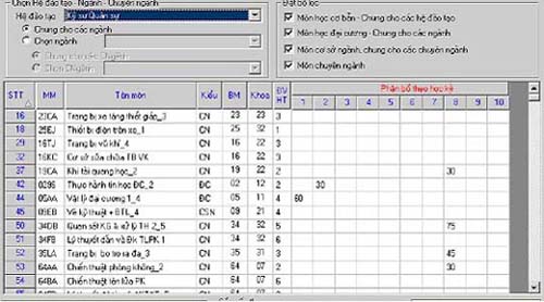 chi tiết và phân bổ cho từng học kỳ của sinh viên theo Khoa và Ngành. Do Học