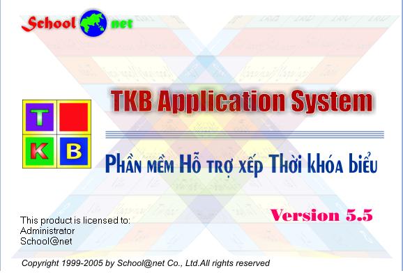 Phần mềm Hỗ trợ xếp Thời khoá biểu TKB 6.0 là phiên bản mới nhất của Phần mềm Hỗ trợ xếp thời khóa biểu do Công ty Công nghệ Tin học Nhà trường - School@net phát hành năm 2006. Bản quyền phần mềm thuộc về công ty School@net, số đăng ký bản quyền tác giả: 185 - VH / BQ.