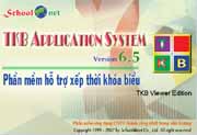 TKB Viewer - Đây là phiên bản rút gọn của TKB 6.5, bản này chỉ cho phép xem và in toàn bộ dữ liệu Thời khóa biểu ra máy in. Ngoài ra chức năng đưa dữ liệu ra HTML cũng có trong phiên bản này. Phần mềm TKB 6.5 áp dụng cho tất cả các loại trường học phổ thông của Việt Nam từ Tiểu học, THCS đến THPT phân ban và THPT kỹ thuật.
